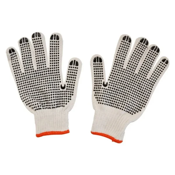 Luva tricotada com pigmentos antiderrapantes, proporcionando aderência e proteção durante o uso.